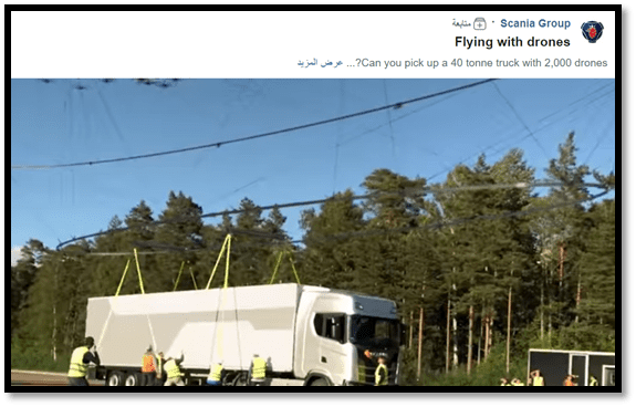 النظرة العلمية لفيديو طائرات درون ترفع شاحنة: