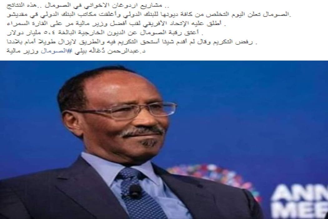 ما حقيقة حصول وزير المالية الصومالي على لقب أفضل وزير مالية مر على القارة السمراء؟