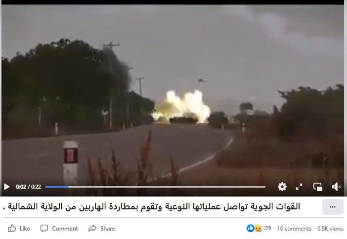 في أعقاب ذلك، تداول ناشطون مقطعاً يدعى أنه يظهر هجمات من القوات الجوية السودانية في الولايات الشمالية.