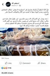 وقد حاز المنشور على 26 ألف مشاركة عدا عن العدد الهائل من التفاعلات والتعليقات، إذ بلغت المشاهدات