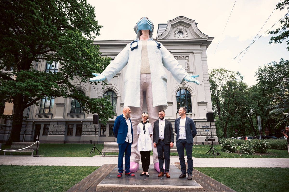 تمثال “Medics to the World مسعفون للعالم”، كشف الفنان النحّات إيغارس بيكش عنه يوم الثلاثاء 16 يونيو في حفل أقيم أمام متحف لاتفيا الوطني للفنون في العاصمة اللاتيفية ريغا.