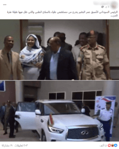في هذا السياق، تناقل ناشطون على فيسبوك يدعون أنها توثق خروج الرئيس الأسبق عمر البشير من مستشفى علياء التخصصي حديثًا،