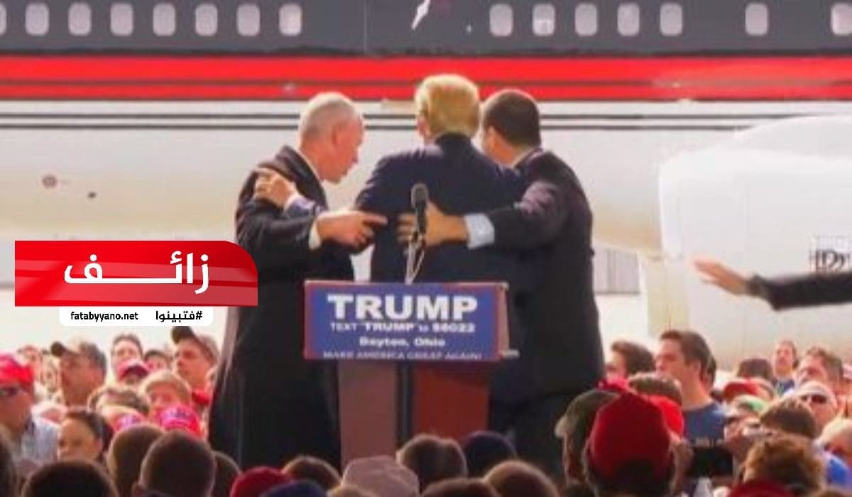 أحد المؤيدين حذر ترامب من شخص حاول تجاوز حاجز أمني للوصول إلى المسرح فأحاط حراس الأمن بترامب لحمايته .