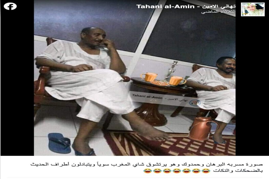 “صورة مسربه البرهان وحمدوك وهو يرتشوق شاي المغرب سوياً ويتبادلون أطراف الحديث بالضحكات والنكات”