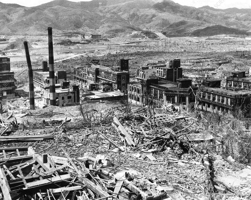 البوابة بالصورة القديمة في مدينة ناغازاكي ولم تدمر القنبلة كل الأبنية بل بقيت عدة أبنية بعد الإنفجار