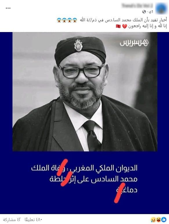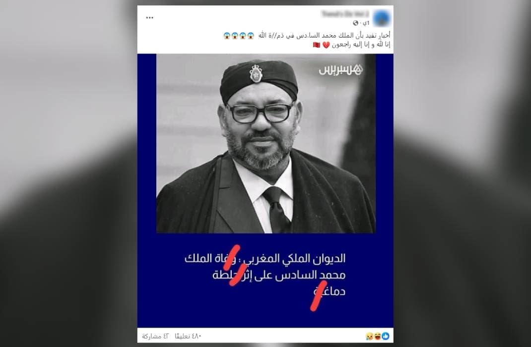 هذا التصميم مفبرك ولم تنشره صحيفة هسبريس المغربية، ولا صحة لخبر وفاة ملك المغرب محمد السادس