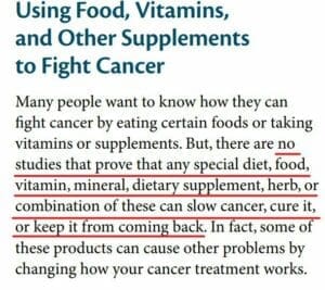 وأكدت على ذلك جامعة جنوب غرب تكساس الطبية، حيث بينت أنه لا يمكن لأي نوع من الغذاء أو الشراب أو الفيتامينات الشفاء من السرطان بشكل تام.
