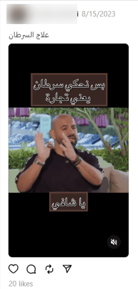 نُشر مقطعًا على منصة ثريدز بتاريخ 15 أغسطس 2023 محققاً 20 تفاعل، كما حقق عشرات آلاف التفاعلات إثر تداوله على فيسبوك هنـا، وانستغرام هنـا.