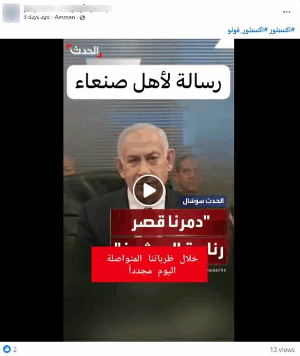 أكد خلاله أن هذا المقطع المتداول هو محاكاة وغير حقيقي، كما أرفق في وصف المقطع عبارة Blast simulation لتجنب التضليل،