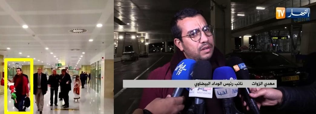 بالمقابل؛ نشرت قناة النهار جانبًا من وصول فريق الوداد البيضاوي إلى الجزائر تحسبًا لمواجهة شبيبة القبائل، كما يظهر في المقطع الآتي.