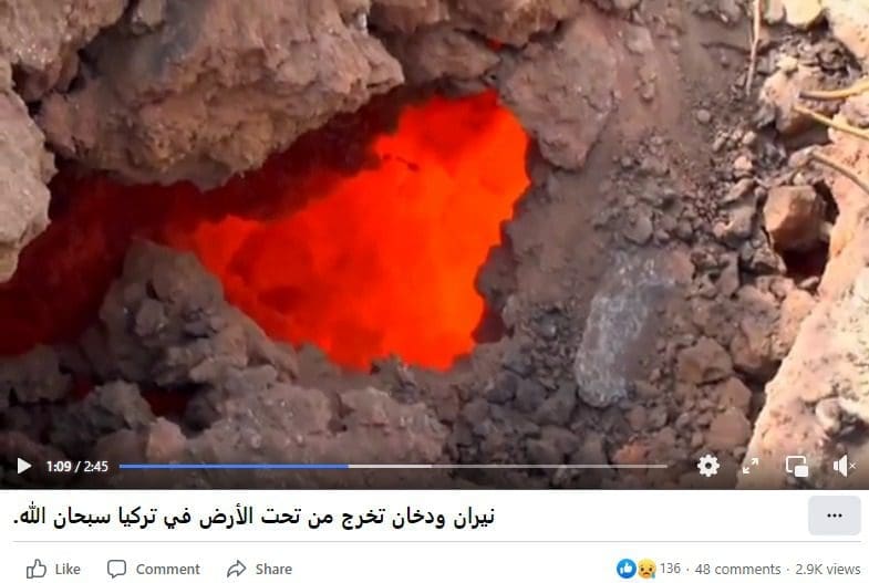 تناقل ناشطون على فيسبوك مقطعاً يدعون أنه يظهر خروج نيران ودخان من باطن الأرض في تركيا،