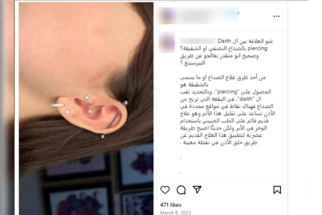 تناقل ناشطون على منصات التواصل الاجتماعي ادعاءً عن علاج الصداع النصفي عن طريق ثقب الأذن،