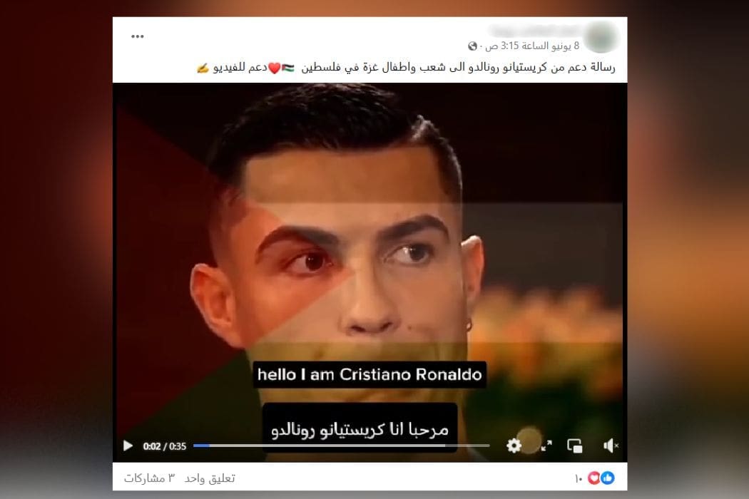 إلا أن كريستيانو لم يتحدث عن غزة خلال هذا اللقاء، مما يشير إلى أن الفيديو مفبرك.