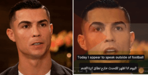 حيث تم إزالة الحديث الأصلي لرونالدو واستخدام إحدى تقنيات الذكاء الاصطناعي بإضافة حديث آخر بصوت رونالدو يظهر أنه كان يتحدث عن غزة.