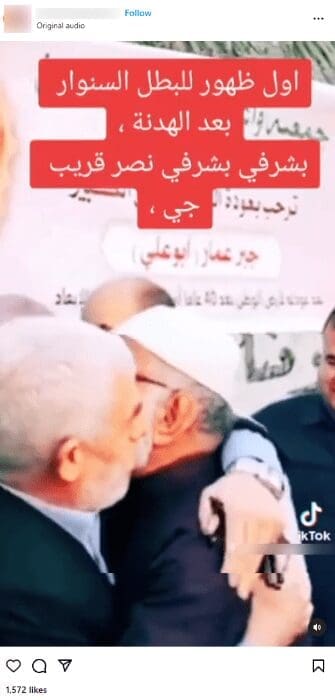 نقلًا عن وكالة رويترز -بدون تصرف-: “أطلق مقاتلو حماس سراح 24 رهينة يوم الجمعة 24 نوفمبر خلال اليوم الأول من الهدنة الأولى للحرب، ومن بينهم نساء وأطفال إسرائيليون وعمال مزارع تايلانديون، بعد أن هدأت أصوات إطلاق النار في أنحاء قطاع غزة للمرة الأولى منذ سبعة أسابيع.” في أعقاب ذلك، تناقل مستخدمو منصات التواصل مقطعاً يدعون أنه للظهور الأول ليحيى السنوار عقب الهدنة.