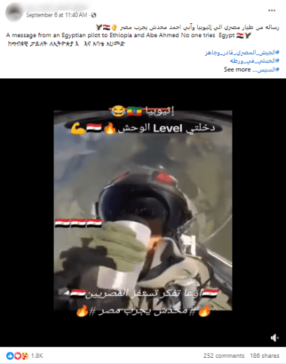 وذلك يأكّد لنا أن الناشر الأصلي للفيديو هو طيّار في القوّات الجوية المكسيكية، وصانع محتوى متعلّق بالمغامرة، ولا علاقة لفيديو الادّعاء بالتوتّر المصري-الأثيوبي الأخير.