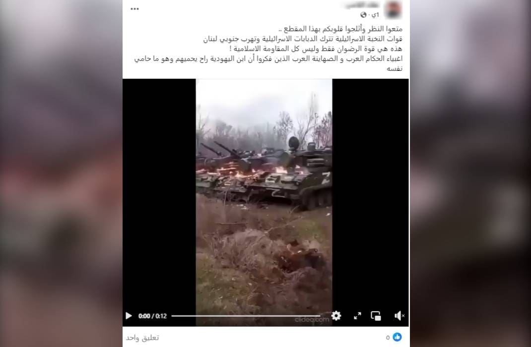 وتداول المقطع منذ عام 2022، ينفي أن يكون لإحراق دبابات إسرائيلية في جنوب لبنان مؤخرًا.