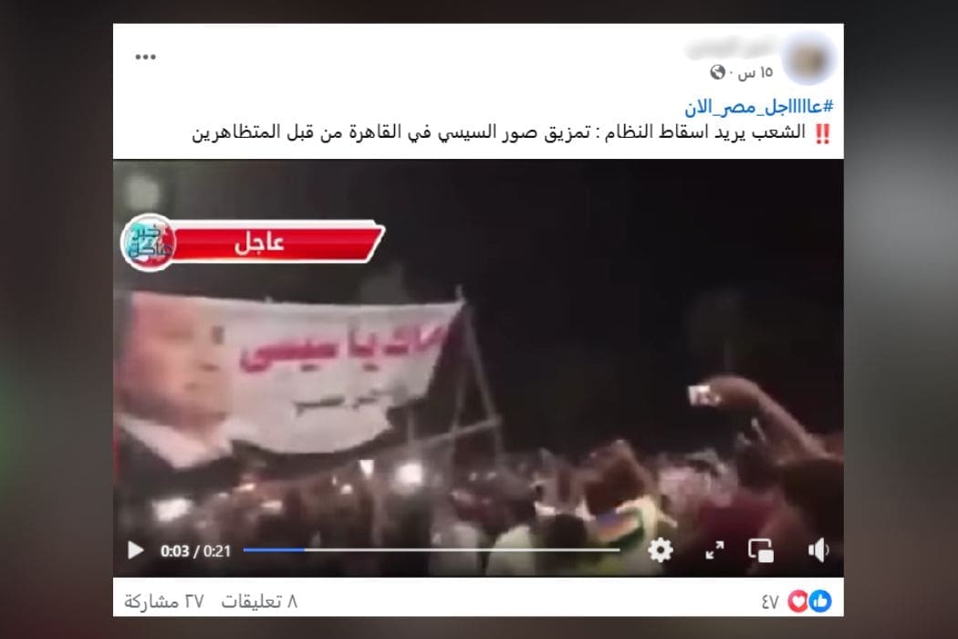 هذا الفيديو متداول منذ عام 2019 لاحتجاجات في دمياط ولا يبين خروج مظاهرات حديثة في القاهرة تم خلالها تمزيق صورة للرئيس المصري عبد الفتاح السيسي