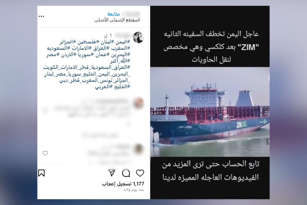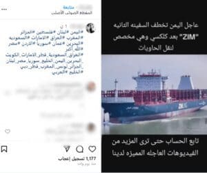 في أعقاب ذلك، تناقل ناشطون على فيسبوك مقطعًا يدّعون أنه يصور سفينة من شركة ZIM اختطفها الحوثيون بعد سفينة جلاكسي ليدر،
