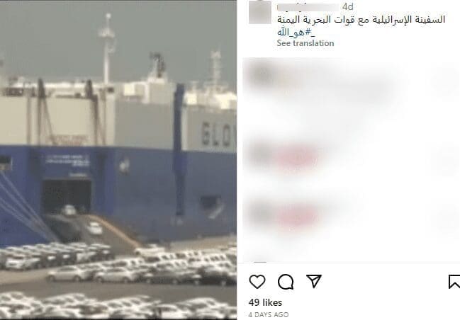 إقرأ أيضًا: هذه الصورة قديمة وليست للسفينة “جالاكسي ليدر” التي احتجزها الحوثيون في البحر الأحمر مؤخراً