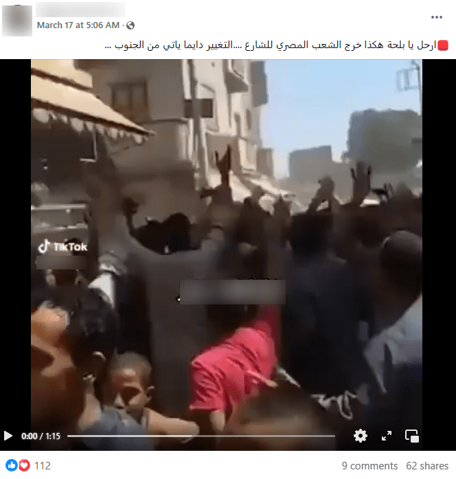 هذا المقطع متداول منذ عام 2019 لمظاهرات في مدينة قوص، محافظة قنا آنذاك