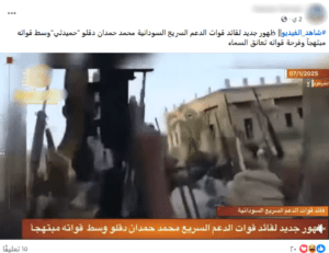 حيث نشرته عدة صفحات وحسابات محلية على فيسبوك في أغسطس 2023 على أن يوثق ظهور حميدتي بين قواته آنذاك.