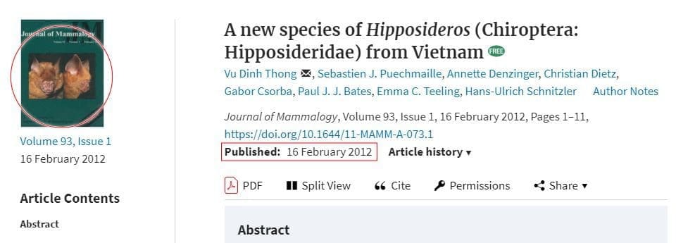 ونشرت مجلة علم الثدييات رقم 93 العدد 1 في 2012/02/16 تحت عنوان اكتشاف نوع جديد من الخفافيش في فيتنام، وتناول المقال المنشور من المجلة بمعلومات ودراسات من 8 علماء عن النوع الجديد المكتشف وكانت صورة غلاف المجلة مشابهة إلى حدٍ كبير صورة الادعاء