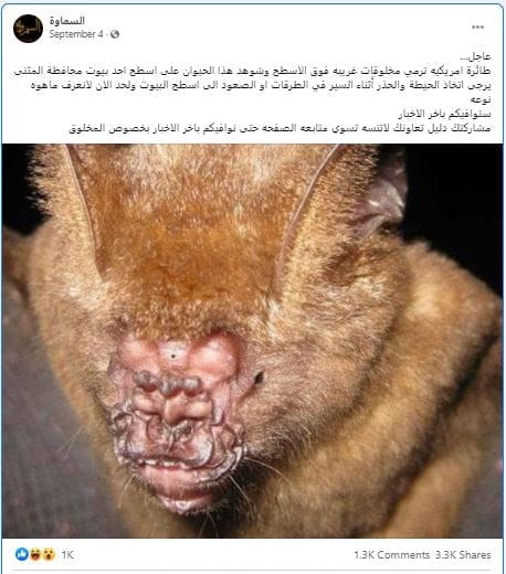 - صورة الخفاش التي في الادعاء صٌورت في فيتنام وليس العراق