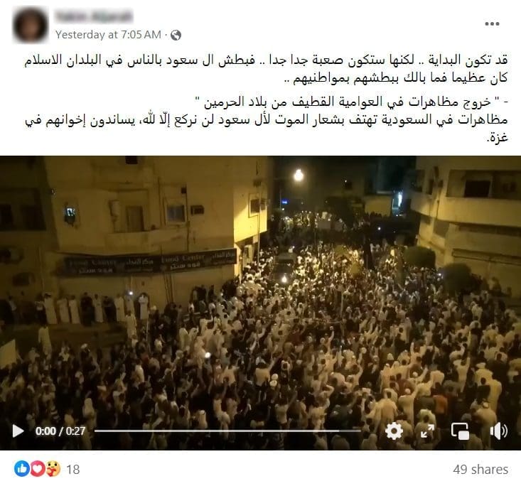 هذا المقطع يصور مظاهرات قديمة عام 2012 وليست مظاهرات حديثة في السعودية
