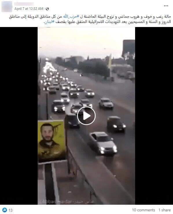 حيث نشره حساب يدعى “hatem” بتاريخ 5 سبتمبر 2019 مرفقًا بالنص الوصفي (دون تصرف): هروب جماعي من جنوب لبنان.