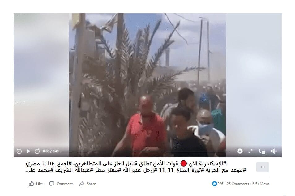 انتشر على مواقع التواصل الاجتماعي مقطع فيديو يدّعي ناشروه أنه يظهر إطلاق الغاز المسيل للدموع على المتظاهرين في الإسكندرية حديثًا،