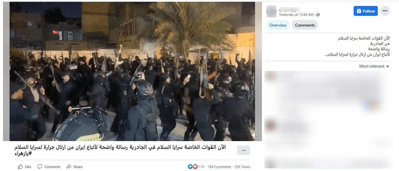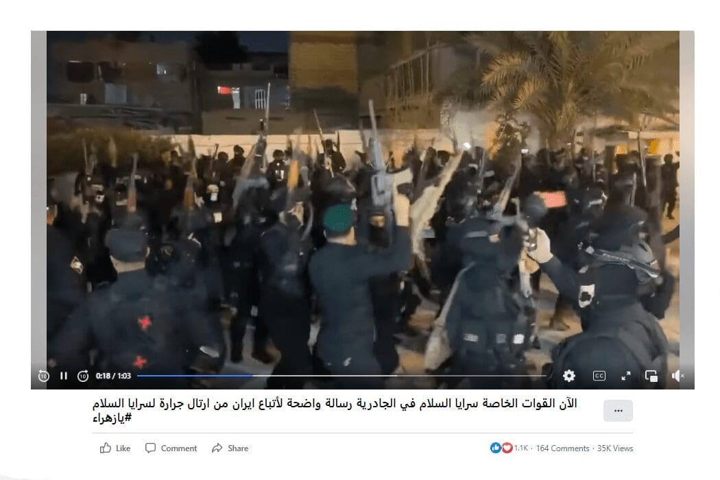 حيث نشرته القناة بتاريخ 19 فبراير 2022 على أنه يظهر قوات سرايا السلام في مدينة بغداد،