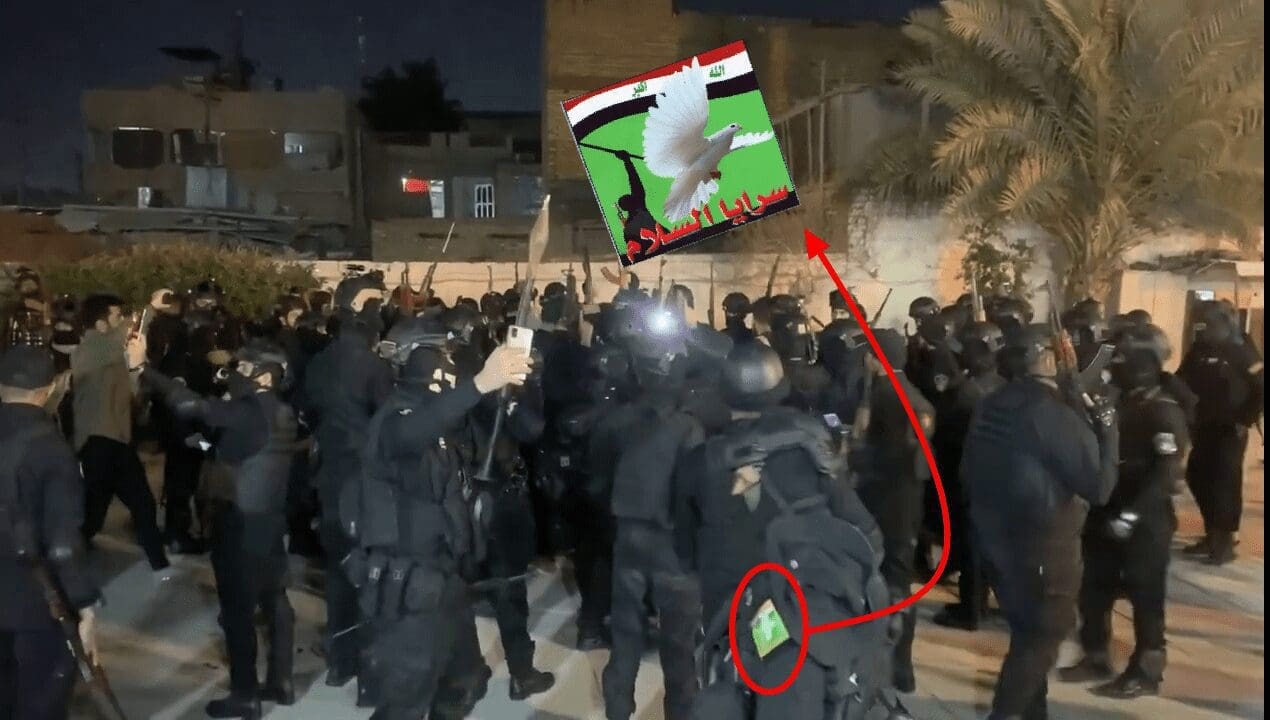 بالمقابل، يمكننا ملاحظة شعار سرايا السلام على لباس الأفراد في المقطع مما يؤكد أنه يعود لقوات سرايا السلام،