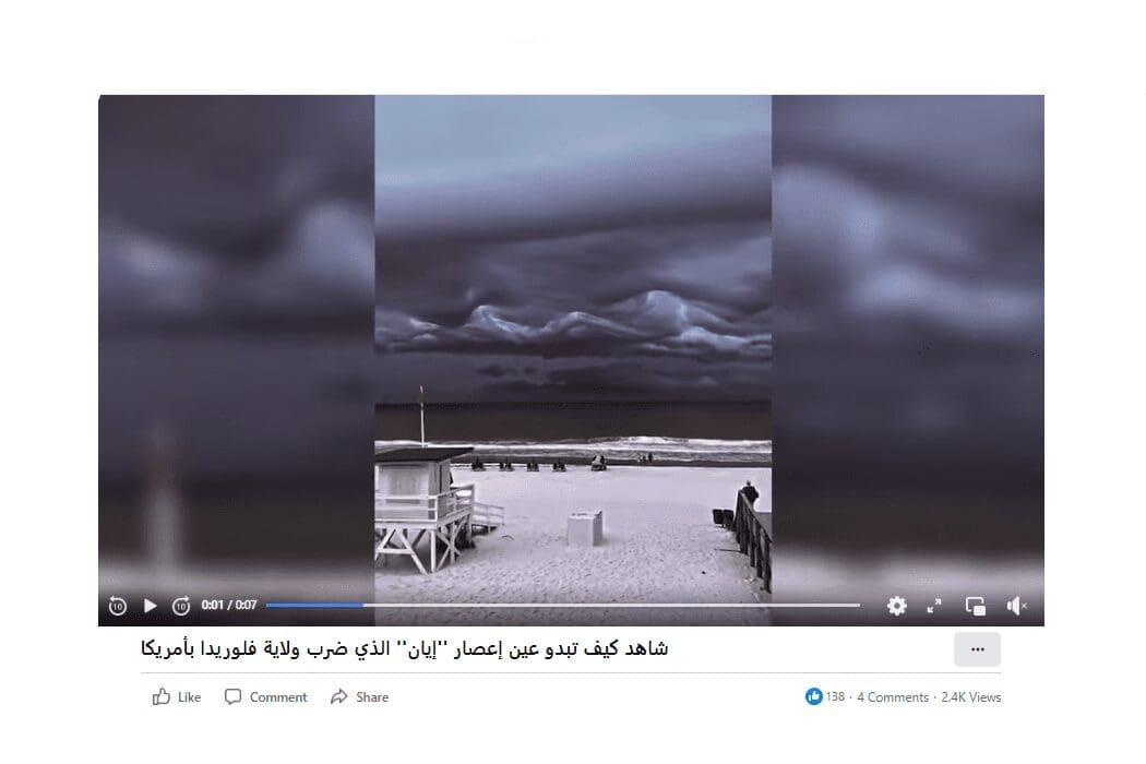 حيث نشره حساب يدعى “oprta” بتاريخ 25 سبتمبر 2022 موضحًا أنه يظهر غيوم كثيفة في شاطئ “فورت والتون” في ولاية فلوريدا،