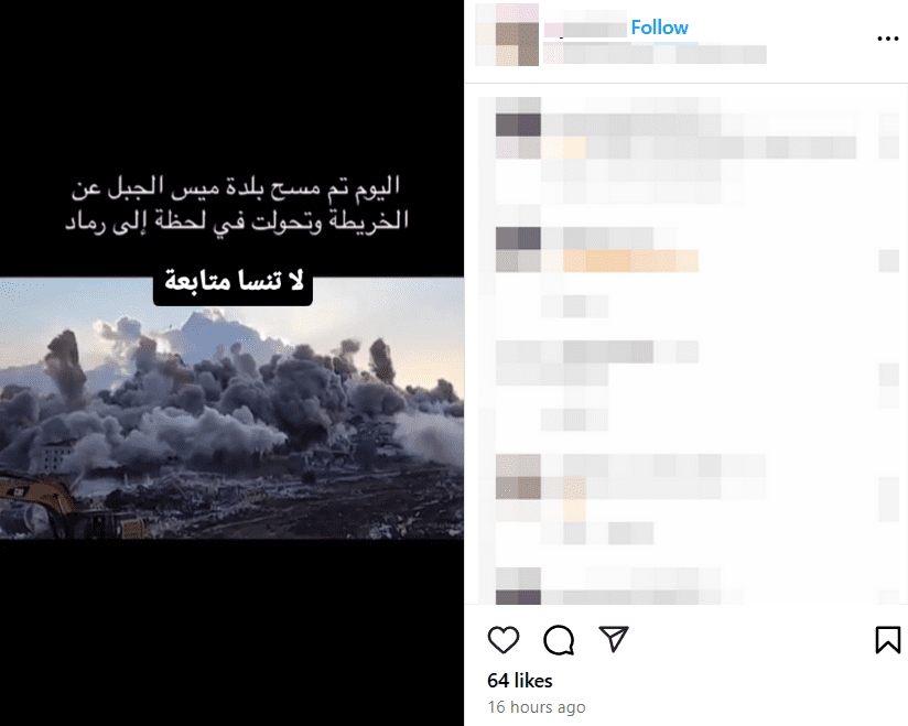 مقطع لاستهداف بلدة ميس الجبل في نوفمبر 2024 يعاد تداوله على أنه لاستهدافها مؤخراً