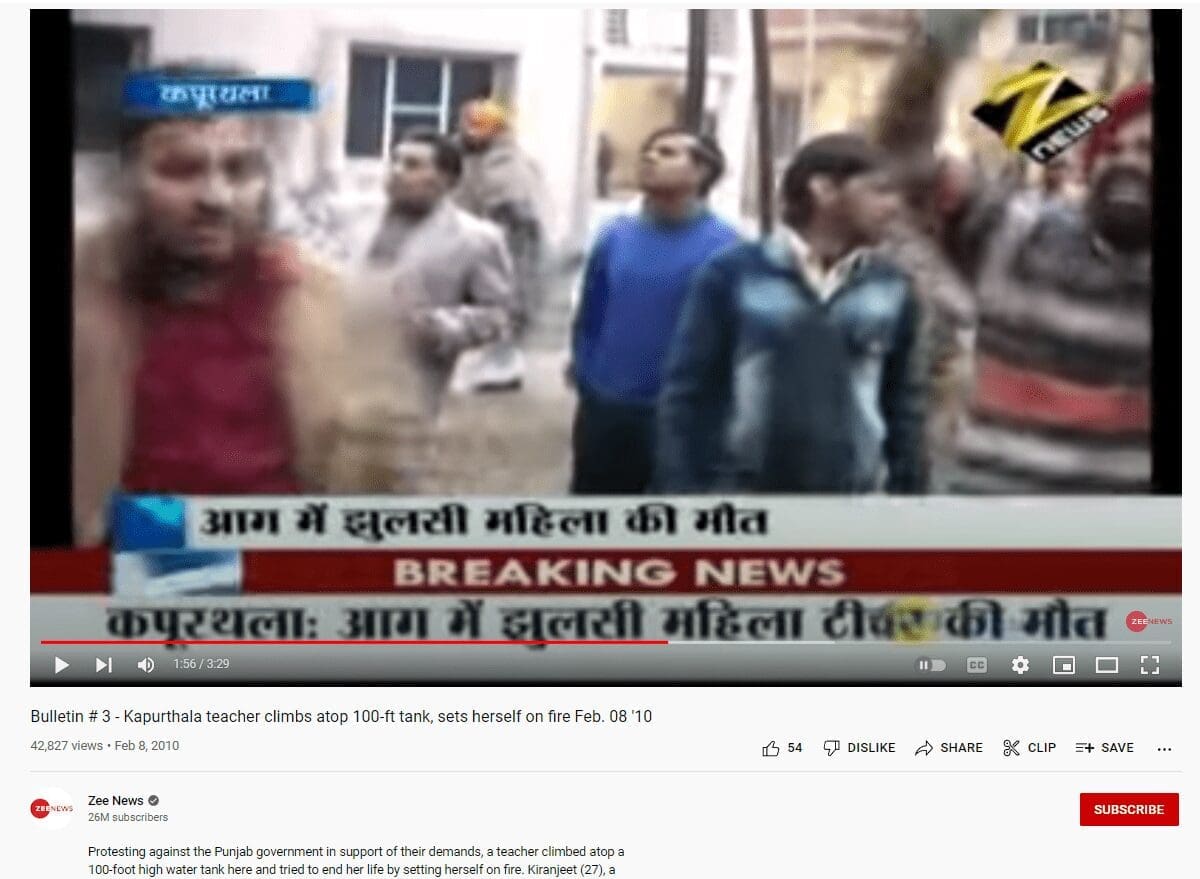 نشرت المدونة صور مقتبسة من مشاهد الادعاء وأرفقت في تفاصيل الخبر أن الحادثة تعود لوفاة معلمة هندية خلال احتجاجها،