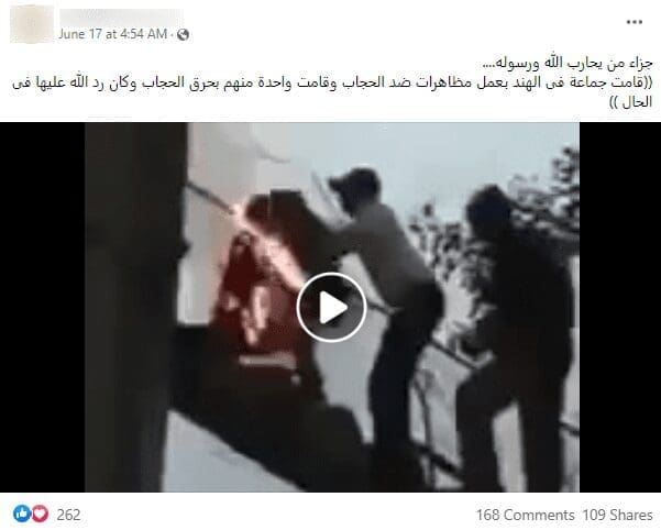 إثر ذلك يتداول ناشطون على مواقع التواصل مقطع فيديو يزعمون أنه يظهر احتراق فتاة هندية أثناء محاولتها حرق الحجاب،