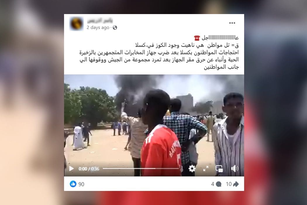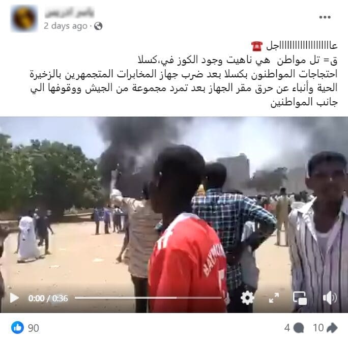 وبحسب فرانس24 آنذاك؛ أطاح الجيش بالرئيس السوداني عمر البشير بعد 30 عامًا في السلطة، يأتي ذلك بعد أشهر من الاحتجاجات. وتداول المقطع منذ عام 2019، ينفي أن يكون لاحتجاجاتٍ في مدينة كسلا السودانية مؤخرًا.
