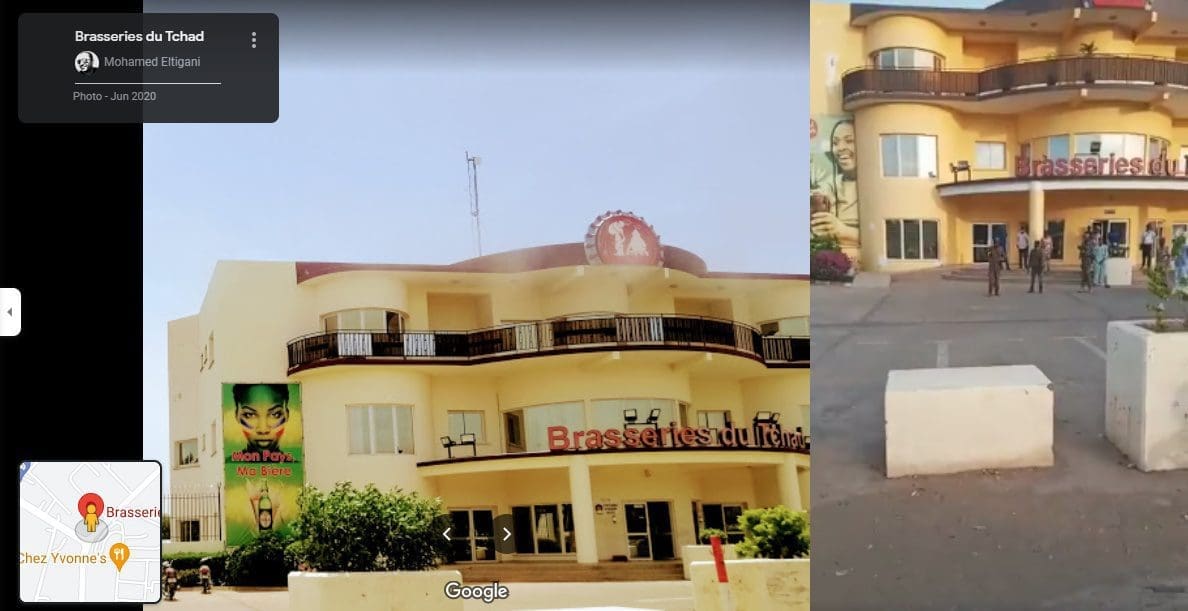 فيما يمكن مطابقة معالم أحدى المقاطع المتداولة مع الصور التي توفرها خرائط جوجل لمصنع “Brasseries du Tchad” للمشروبات الكحولية في تشاد.