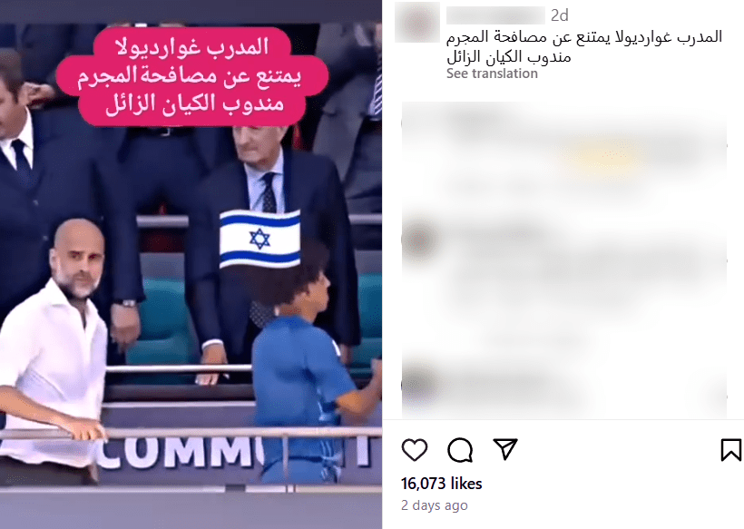 مما ينفي أن تكون هذه المشاهد لتجاهل بيب غوارديولا للمندوب الإسرائيلي في احتفالات نادي مانشستر سيتي مؤخراً.