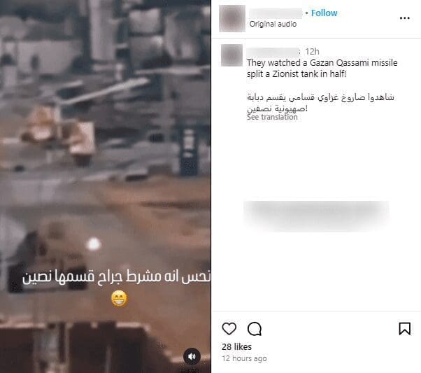 وتداول المقطع منذ يناير 2015 ينفي أن يكون حديثاً أو لتدمير دبابة تابعة للجيش الإسرائيلي في غزة مؤخراً.