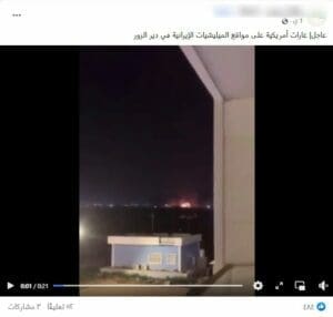 إثر ذلك، تناقل ناشطون على فيسبوك مقطعًا يدعون أنه يظهر غارات جوية أمريكية على دير الزور،