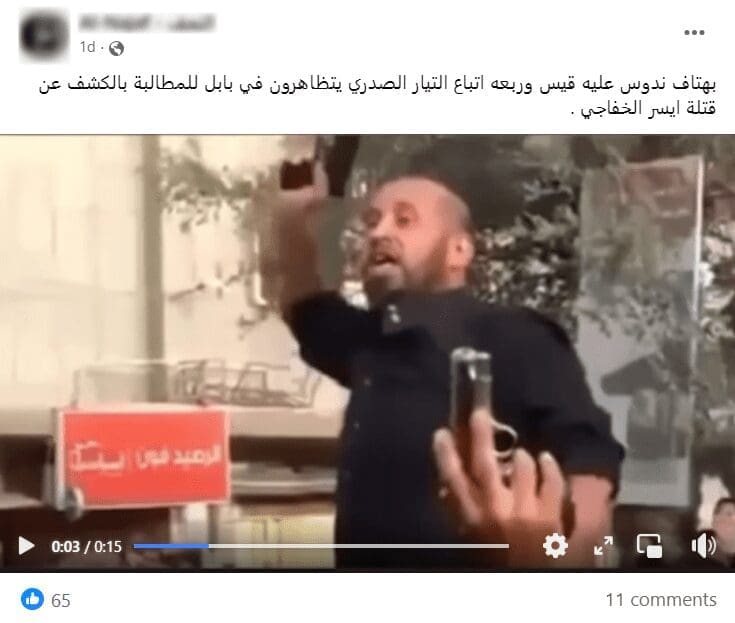 هذا المقطع متداول منذ عام 2016، وليس من المظاهرات في بابل للمطالبة بالكشف عن قتلة أيسر الخفاجي