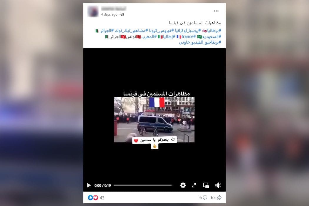تناقل ناشطون على الفيسبوك مقطع فيديو يدّعي ناشروه أنه يظهر مظاهرات للمسلمين في فرنسا.