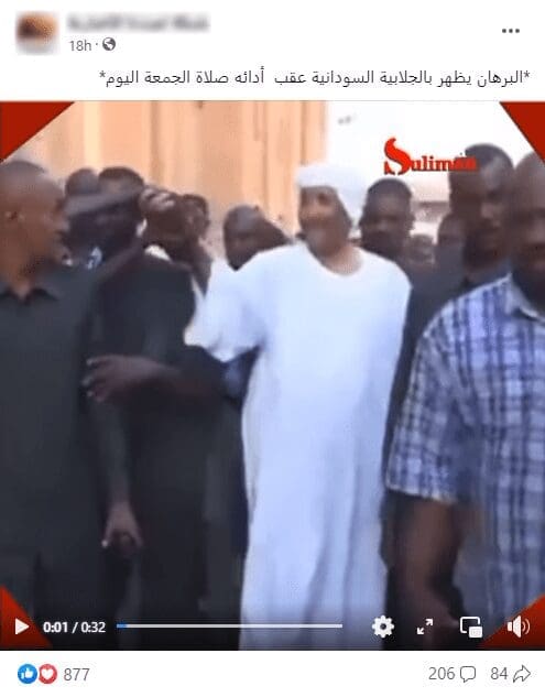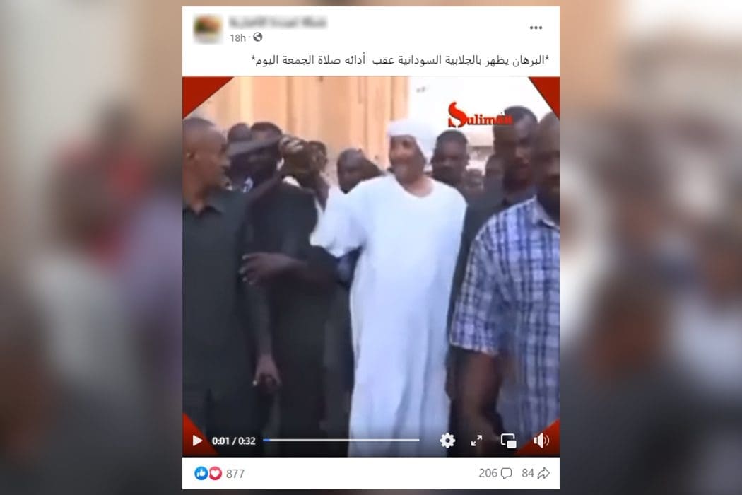 تناقل بعض الناشطين على الفيسبوك مقطع فيديو يدّعي ناشروه أنه يظهر البرهان عقب أدائه صلاة الجمعة مؤخرًا.