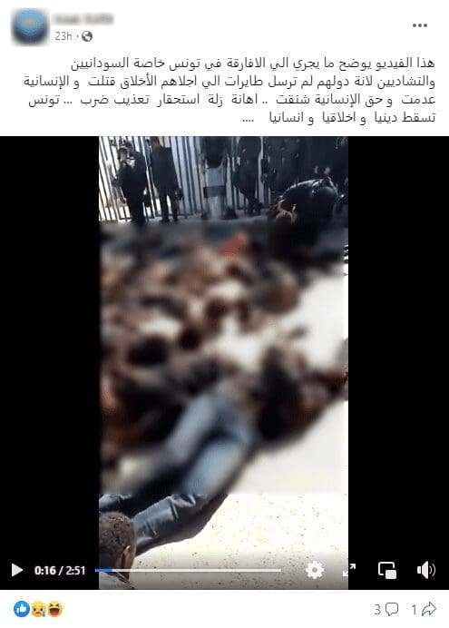 إثر ذلك تداول ناشطون على موقع الفيسبوك مقطع فيديو يدعي ناشروه أنه يبين تعامل السلطات التونسية مع الأفارقة