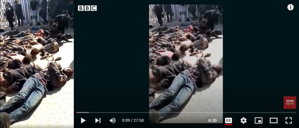 صورة مركبة تبين مقارنة بين أحد مشاهد مقطع BBC (يمين) ومقطع الادعاء