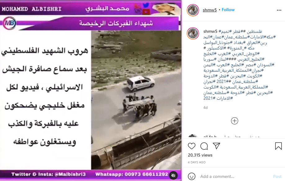 نشر حساب shmw5 على موقع التواصل الاجتماعي انستغرام مقطع فيديو وأرفقها بالنص الوصفي الآتي داخل المقطع (من دون تصرّف):
