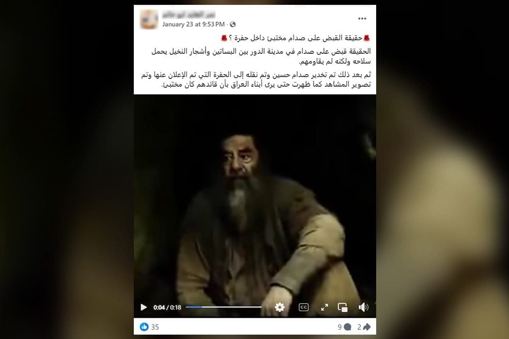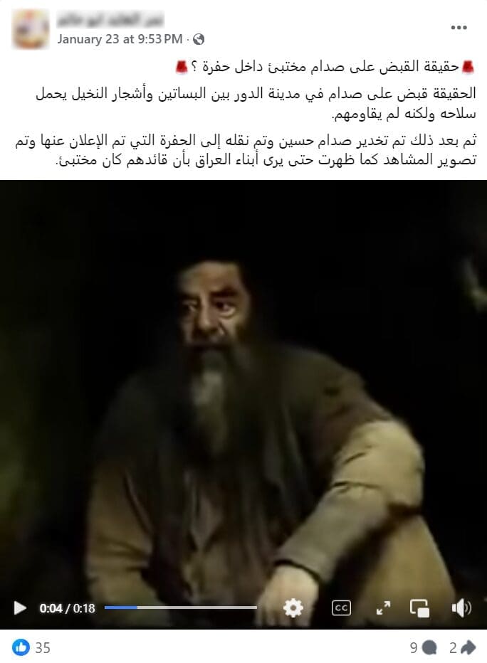 هذا المقطع مولد بإحدى تقنيات الذكاء الصناعي، ولا يصور مقطع فيديو حقيقي لصدام حسين من داخل حفرة