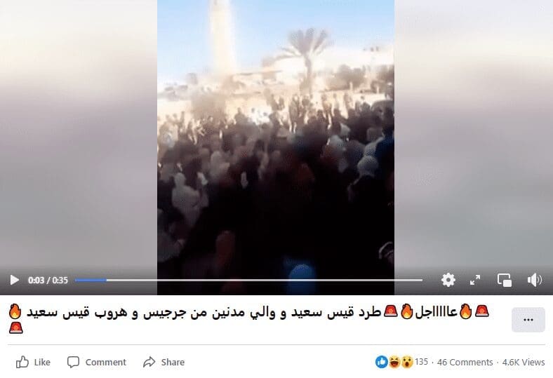 إثر ذلك تداول ناشطون على فيسبوك مقطعًا يزعمون أنّه يظهر طرد رئيس الجمهورية قيس سعيّد ووالي مدنين من جرجيس مؤخرًا.
